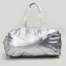 Keep your gym gear in one place and ready to go with this duffle bag. It has a metallic tone finish with a side zip entry for your sneakers. The spacious main compartment comes with multiple interior pockets for easy organisation. This bag has a detachable strap and handles for convenience.