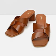 Take your style to new heights with this pair of sandals. It features a criss-cross upper, square-toe design, a padded footbed, and a covered block heel.