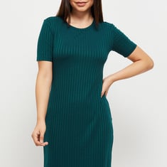 A perfect ensemble to ace any occasion, this bodycon dress is stapled with a ribbed surface. It is highlighted with a round neckline, mini length, straight hem, and half sleeves.