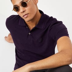 Elevate his casual attire with this solid polo t-shirt that comes with a polo collar, short sleeves, and side slits at the hem. Complete your look by pairing this polo with jeans and sneakers.