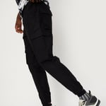 Amp up your street style with this pair of jogger trousers that are rendered in a solid tone. It features a drawstring waist, multiple flap pockets in addition to the side insert pockets and shirred cuffs. Team up this pair of trousers with a tee and sneakers to complete the look.