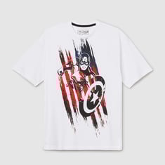 Show off your love for superheroes with this Captain America T-shirt. Featuring a classic crew neck and half sleeves, it offers everyday comfort with a bold graphic design that celebrates the iconic hero.