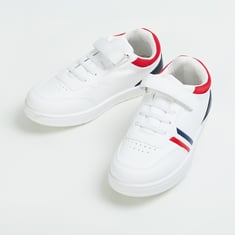 Amp up his sneaker game with this pair of shoes. It features a colourblock upper, round toe, lace-up panel and Velcro strap, cushioned footbed, and durable outsole.