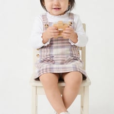 Playful yet classic, this flannel checked pinafore dress with top is a versatile wardrobe addition. The dress features straps and a button closure, and square neck. Paired with a mock-neck, full-sleeve top for a layered look that’s both chic and comfortable.