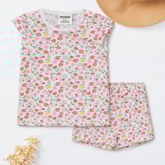 Brighten up your casual wardrobe with this floral print shorts set. The set includes a round neck, half sleeves T-shirt paired with matching shorts featuring an elasticated waist for a comfy and easy fit