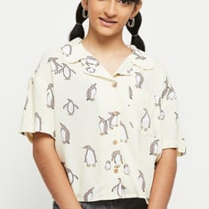Dress up your girl in the casual comfort, with classic style and appeal. Featuring a smart graphic print shirt, amped up with playful appeal, half sleeves, and lapel collar neck.