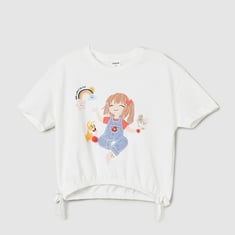 Turn your little girl's playtime into a fashion fiesta with this beautiful t-shirt featuring graphic prints, short sleeves, and a tie-up detail at the back.