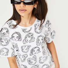 Elevate your child's casual wardrobe with this trendy boxy crop t-shirt. Featuring an all-over printed surface, round neck, and half sleeves, it adds a fashionable twist to any outfit.