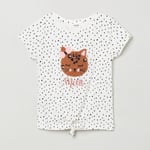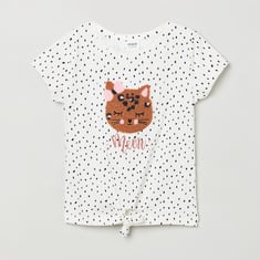 Amp up your child's wardrobe with this trendy printed T-shirt which has a round neck, tie-up at the hem and short sleeves.