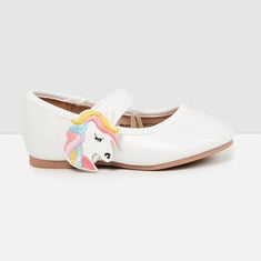Girls Unicorn Applique Velcro-Strap Ballerinas