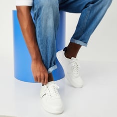 Up your footwear game with this pair of sneakers. It features a round toe, piping on the sides, a contrast back heel counter, and a lace-up closure. The padded footbed and patterned outsole enhance comfort and support.