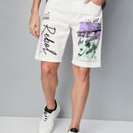 Spruce up your summer styling with this pair of denim shorts. It is updated with graphic prints on the leg, a belt loop waist, and 5 pockets. Team up this pair of shorts with a tee and sneakers to ace the look.