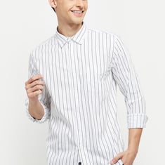 Great comfort infused with great style, this casual shirt is designed with stripe print, finished with full sleeves, spread collar, full button placket, curved hemline, and amped up with a fashionable look.