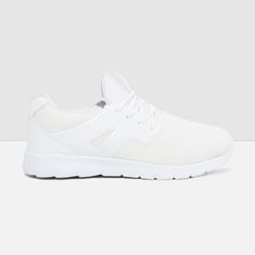 A pair of sports shoes designed with a lace-up fastening, and the soft soles provide comfort throughout the day.