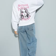 Gear up for winter in style with this urban sweatshirt featuring a bold graphic print at the back, full sleeves, a round neckline, and a ribbed hem. Stay cosy while making a statement on the city streets.