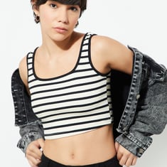 Unleash your vibe with this striped crop tank top. Featuring a scoop neck and a sleeveless design, it's your go-to piece for that effortlessly cool look.