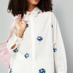 Add a touch of elegance to your wardrobe with this floral embroidered shirt. Featuring a spread collar, button placket, and full sleeves with button cuffs, it blends classic tailoring with intricate detailing.