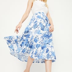 An ideal pick for a casual wardrobe, this skirt is designed with a floral printed surface, an elasticated waistband, and a midi silhouette. The flattering length and colour hue add realm to the skirt.