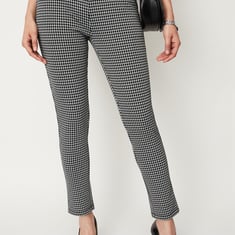 This product is cut from patterned fabric for a chic look. It features a slim-fit silhouette, two handy pockets, and an elasticized waistband for a flattering fit. Pair it with a solid tee and pumps for a formal look.