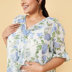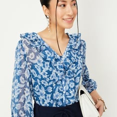 Women Printed Ruffle Detailed Top with Cami