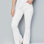 Add a modern twist to your outfit with these solid high-rise bootcut jeans offer a perfect blend of comfort and style. Featuring a button closure and a flattering bootcut fit with slit hem, they elongate the legs for a timeless look.