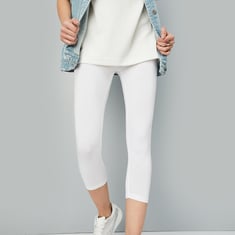 These calf-length leggings feature a comfortable elasticated waistband and a sleek, solid surface. Ideal for everyday wear, they offer a snug fit and are perfect for pairing with tunics, dresses, or casual tops.