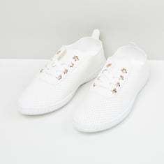Women Solid Perforated-Detail Casual Shoes