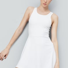 Stay on top of your game with this sleeveless tennis dress, crafted to keep you dry and comfortable as you move. Designed for performance and style, it features a fitted bodice with a round neckline, a ventilating mesh panel at the back, and ribbed trims for added flair. The flared skirt flows effortlessly over integrated shorts with a functional pocket, combining practicality with sporty elegance.