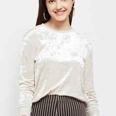 Get cosy in style with this classy sweatshirt featuring full sleeves, a round neckline, and a ribbed hem.