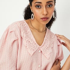 Women Textured Peter Pan Collar Top