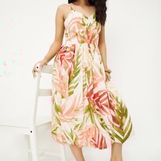 Women Tropical Print A-line Midi Dress