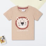 Show off your wild side with this lion-appliqued T-shirt. Featuring a bold lion applique on the front, a classic crew neck, and half sleeves, it blends comfort with standout style.