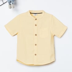 Stay effortlessly sharp with our seersucker shirt — designed with a band collar, button placket, and half sleeves for a breezy, modern feel.