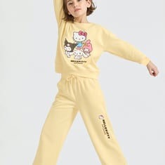 Add a playful charm to your wardrobe with this Hello Kitty trousers set. The t-shirt comes with a classic round neck and full sleeves, paired with matching trousers featuring a drawstring closure for a snug and comfortable fit.