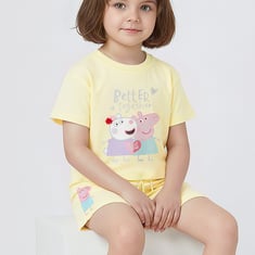 Make playtime extra fun with this Peppa Pig shorts set! The T-shirt features a round neck and half sleeves, paired with comfy shorts designed with a drawstring closure for a secure fit.