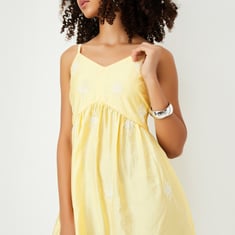Ready to turn heads at your next event? This embroidered A-line midi dress with a sweetheart neckline and shoulder straps is your perfect pick. With delicate embroidery and side pockets, it blends style and functionality effortlessly!