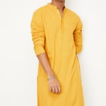 This embroidered kurta exudes timeless elegance, featuring intricate embroidery, a mandarin collar, full sleeves, and side slits for added comfort and style. The side pocket adds a touch of functionality, making it a perfect blend of tradition and practicality.