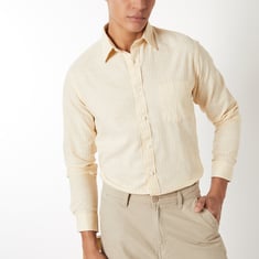 Make a statement with this striped slim fit shirt, featuring a sharp spread collar, full button placket, and a functional patch pocket. Designed with full sleeves and button cuffs, it offers a tailored look with a modern edge.