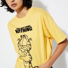Elevate your street-style game with this Garfield-printed T-shirt. Featuring a stylish print, round neckline, and half sleeves, it effortlessly injects flair into your wardrobe.