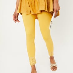 Upgrade your bottom-wear collection with these floral-printed leggings featuring an elasticated waistband. These stylish printed leggings boast a captivating design with a vibrant floral print gracefully adorning the bottom hem. The floral accents add a touch of nature-inspired charm, transforming these leggings into a fashionable and eye-catching wardrobe staple.