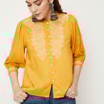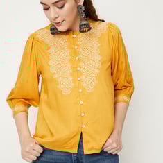 Bring in the festivities with grace in this delightful A-line tunic. Designed with a placement embroidery, round neckline, button-down closure, and volume sleeves, it goes well when worn with a pair of jeans and flat sandals.
