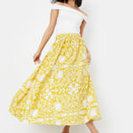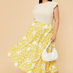Add a feminine touch to your wardrobe with this printed flared skirt, designed in an ankle-length style for a flowy, elegant look. The elasticated waist ensures a comfortable, adjustable fit. Model Size :
