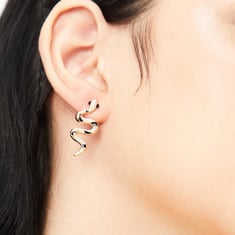 Make a chic statement with this pair of earrings. It features a snake design with embellished accents and enamel detailing for a standout look. This pair is secured with a post and back closure.