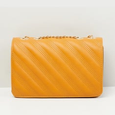 Defined by a textured detail, this clutch features a flap-closure that protects a spacious compartment. The design is also enhanced by a chain strap that allows you to carry it with ease.