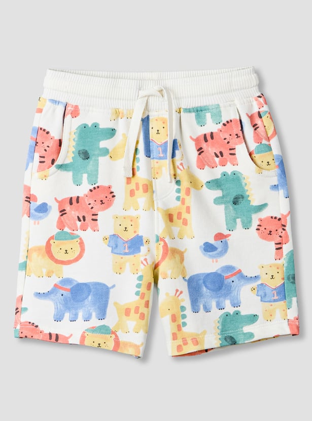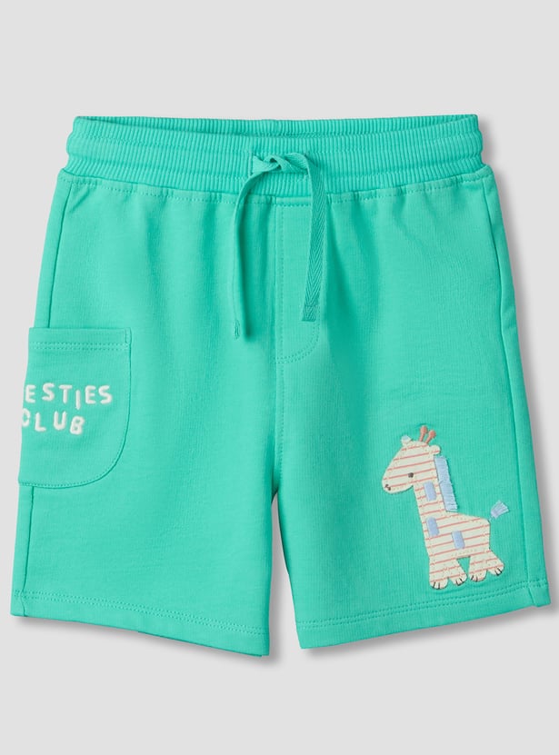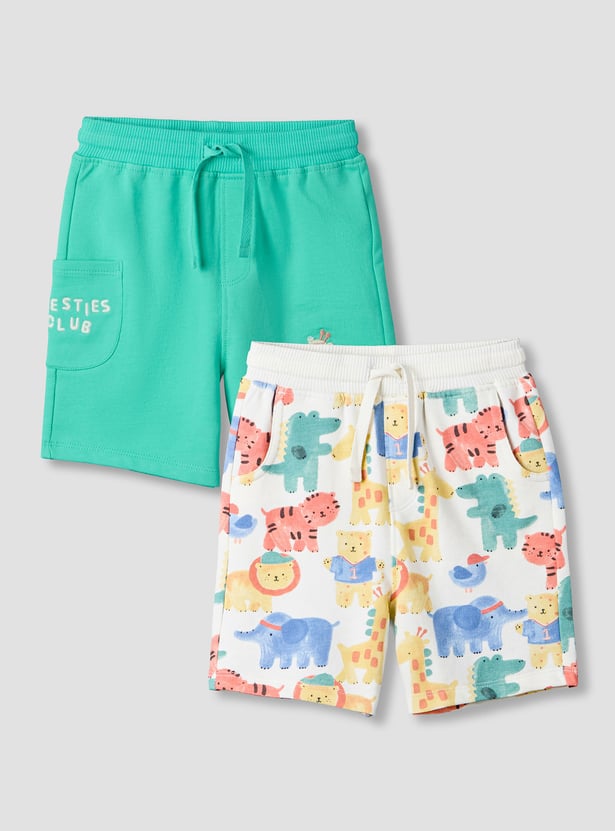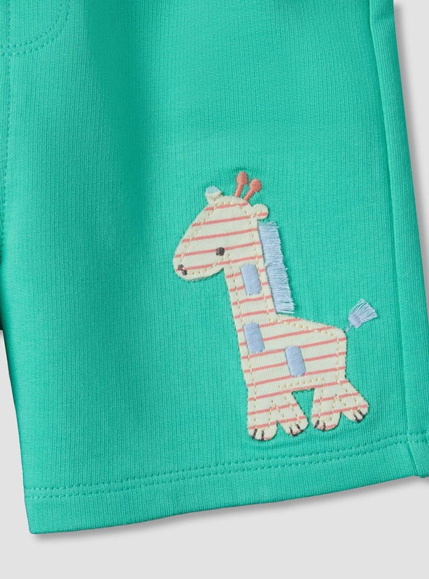 Discover comfort and style with this set of two shorts, perfect for little ones. . One pair features a vibrant wild animal print, while the other offers a solid colour with an embroidered giraffe detail, providing versatile styling options. Crafted from soft, breathable cotton fabric, these shorts ensure maximum comfort for everyday wear