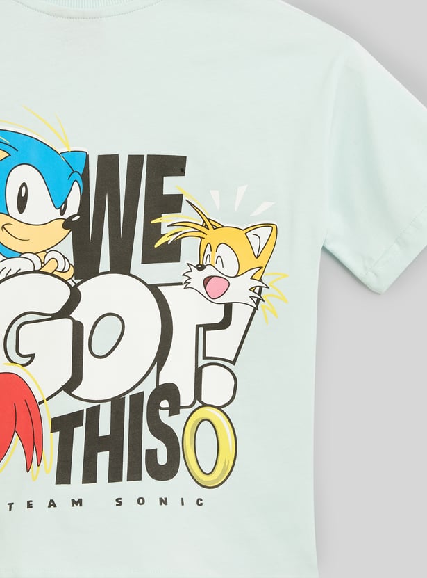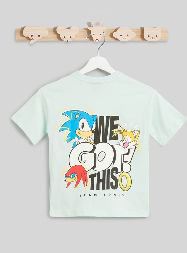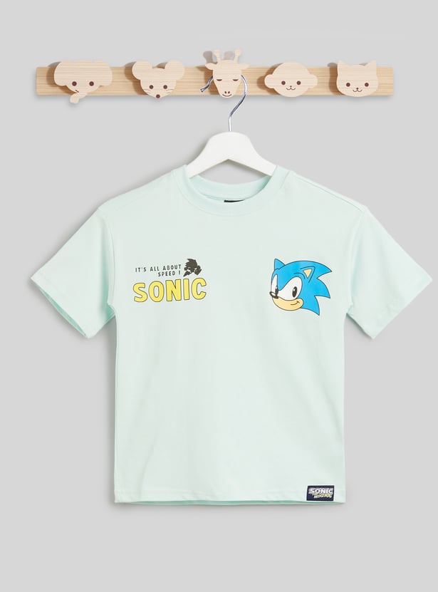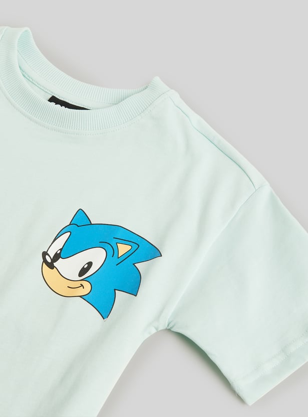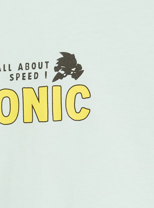 Bring supersonic energy to his wardrobe with this Sonic the Hedgehog Print T-shirt. Featuring a bold, action-packed graphic of everyone’s favourite speedy blue hero, this crew neck tee is crafted with comfortable half sleeves, making it a high-speed favourite for playdates and weekend adventures.