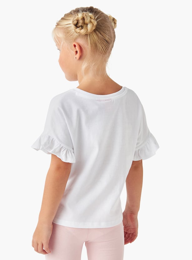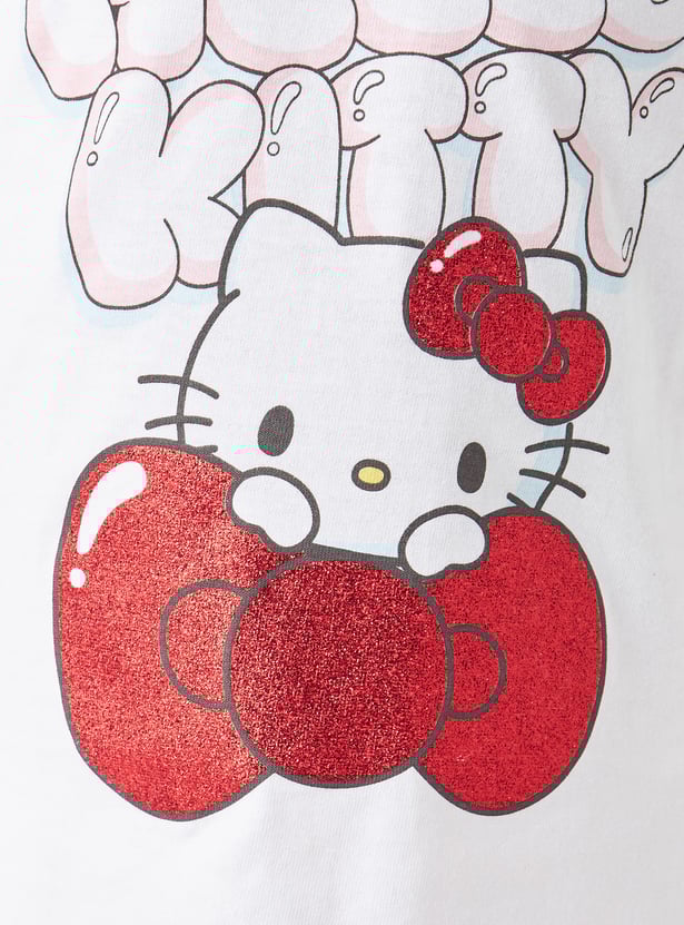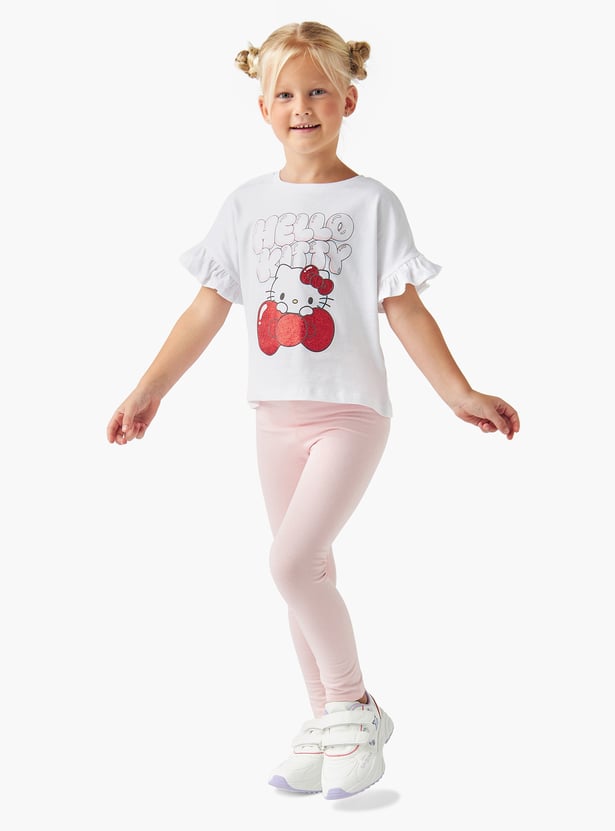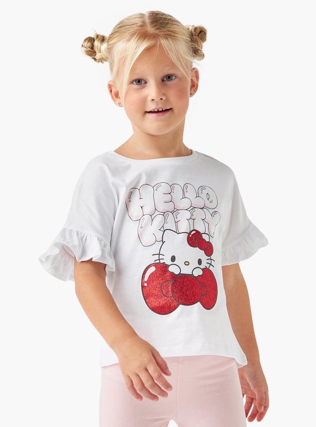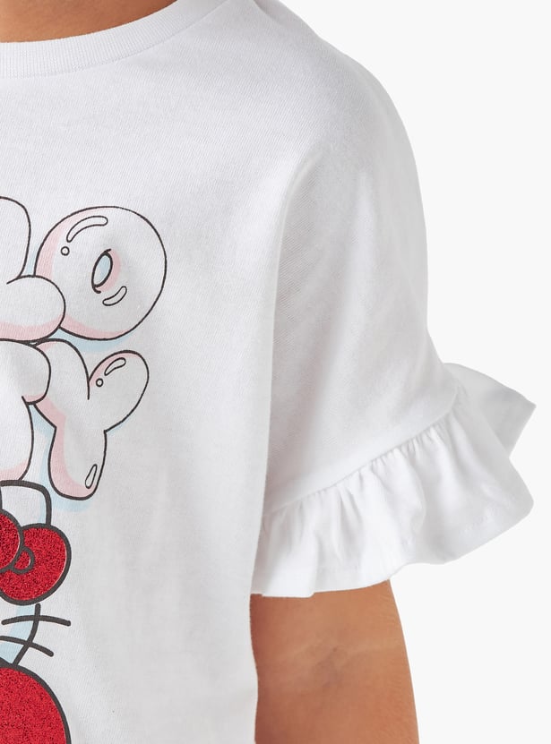 Sanrio Hello Kitty Print T-shirt with Ruffled Short Sleeves