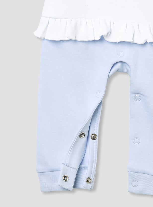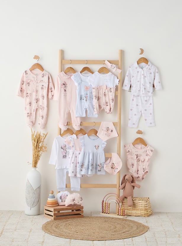 The Minnie Mouse print t-shirt and pyjama set is a charming choice for baby girls. Made from soft, breathable fabric, this set includes a long-sleeved t-shirt featuring a playful Minnie Mouse print, along with matching pyjama. The long sleeves and jog pants ensure warmth and comfort, making it perfect for bedtime or lounging at home. This adorable set combines fun and cosiness, making it a delightful addition to any baby girl’s wardrobe.