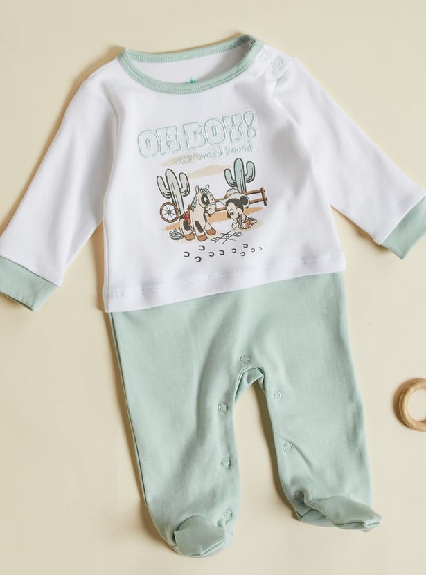 Mickey Mouse Print Closed Feet Sleepsuit