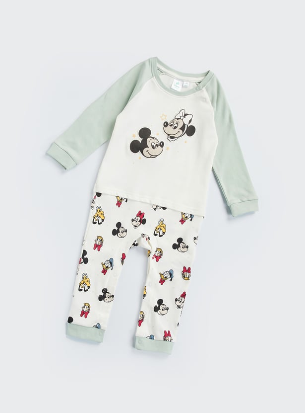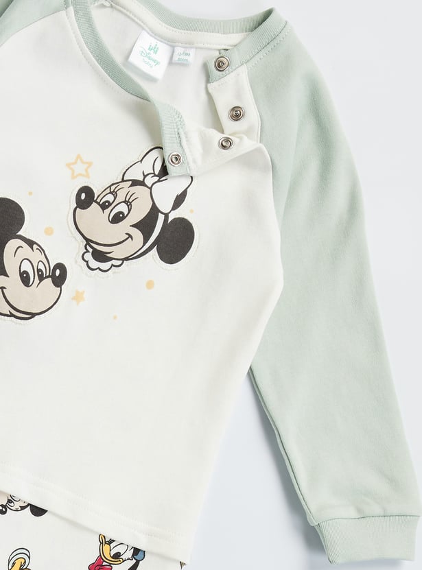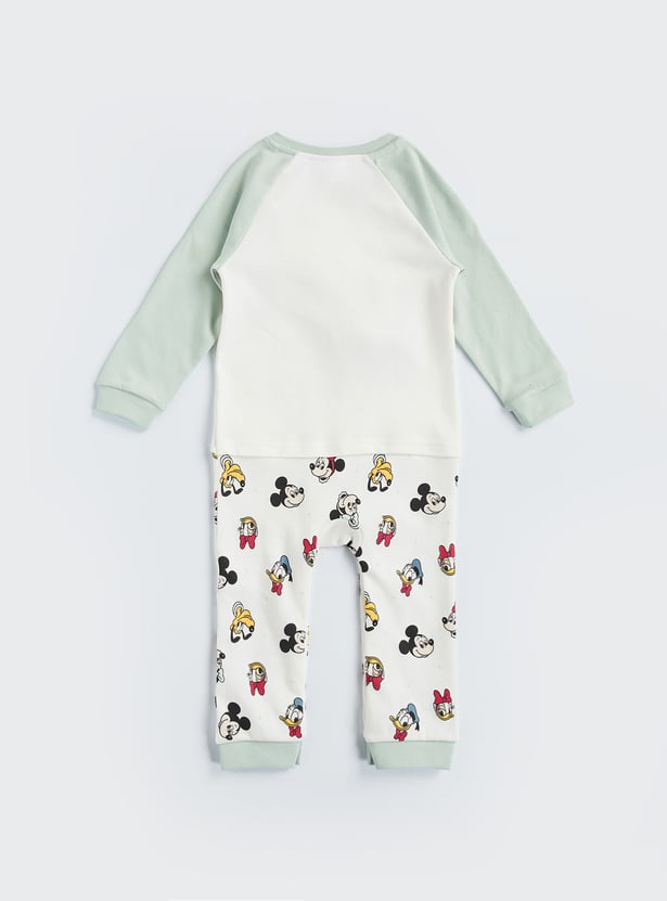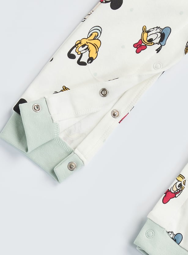 Make bedtime extra cute and cosy with the adorable Mickey and Friends print sleepsuit. Designed with a comfy crew neckline and full sleeves, this sleepsuit keeps your little one warm and snug through the night. The fun Mickey and friends print adds a playful touch, while the easy button closure makes dressing and diaper changes quick and hassle-free. Perfect for naps, bedtime, or lounging at home, this sleepsuit is made from soft, breathable fabric to keep your baby comfortable all day and night long.